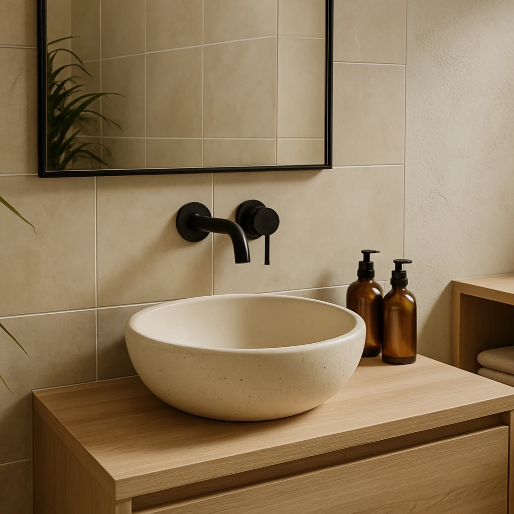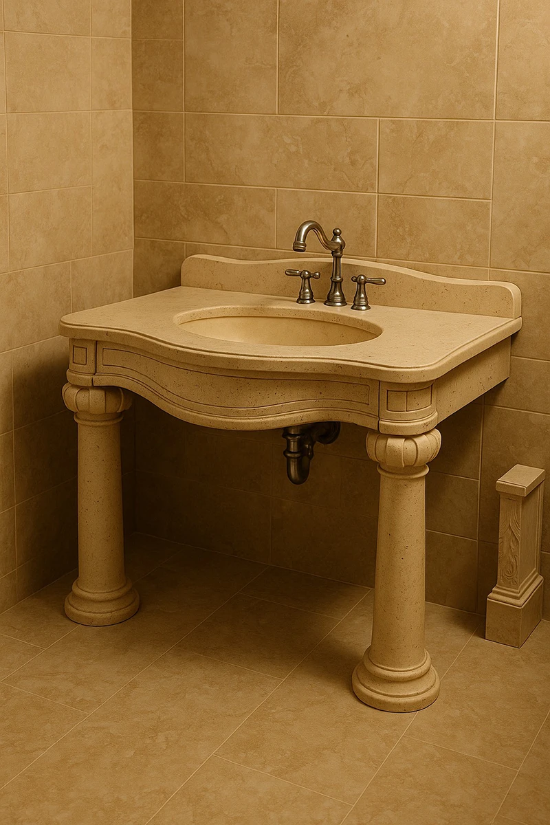 Realizăm lavoare de baie, căzi de duș, obiecte ornamentale, brâuri, mozaicuri, stâlpi, jardiniere și alte piese unice din travertin, marmură compozită și minerale compozite – toate inspirate de design italian și prelucrate cu măiestrie locală.